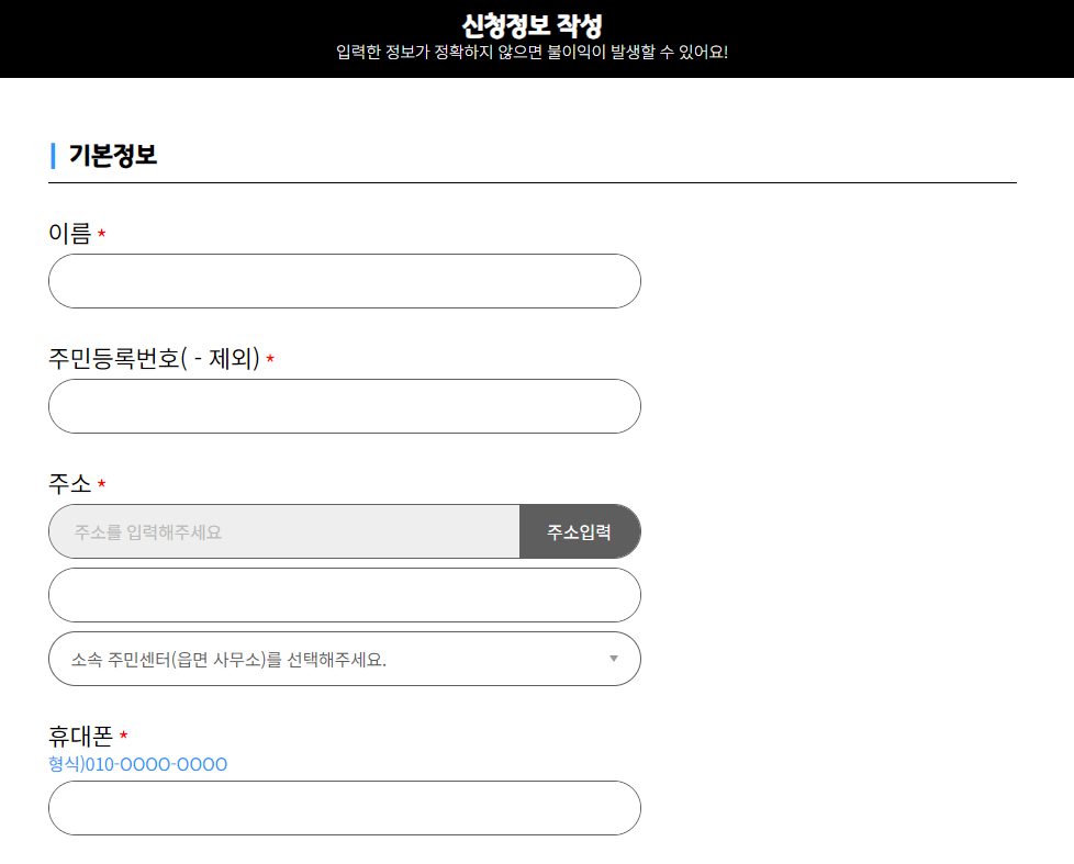 이름, 연락처, 주소 등의 기본정보를 입력해 준 다음