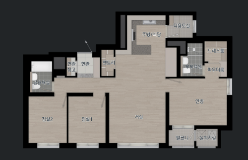 84 타입은 팬트리공간이 넓게 빠져있는데 이 공간을 추가금액 없이 알파룸으로 변경가능하다는 큰 혜택이 있습니다.
