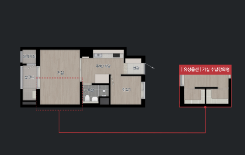 39 타입은 일반분양 106세대로 유상옵션으로 거실수납장을 설치할 수 있습니다.