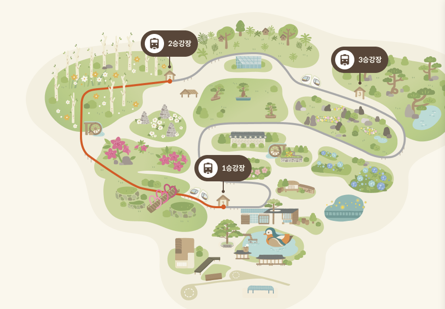 그 다음 화담숲 모노레일 타실 분은 모노레일 설정화면이 나옵니다. 그럼 모노레일은 1구간, 2구간, 순환권이 있습니다. 순환권을 구매할경우 1~3승강장까지 모두 돌기 때문에 걸어서 구경할 수가 없습니다. 젊은분들이라면 1구간만 어르신이 계신다면 2구간까지 끊고 다른 구간은 걸어서 여유롭게 구경하시는걸 추천드립니다.