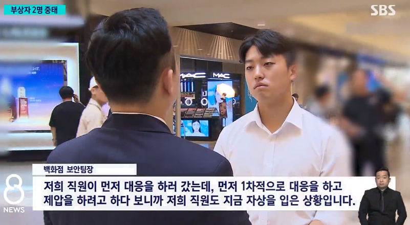 위 사진은 여성을 흉기로 위협하는 남성을 시민들이 주변의 물건과 캐리어를 이용해 제압하는 과정이었는데 1명의 흉기범에 3명의 남성이 대응했지만 쉽지 않아 보였습니다.