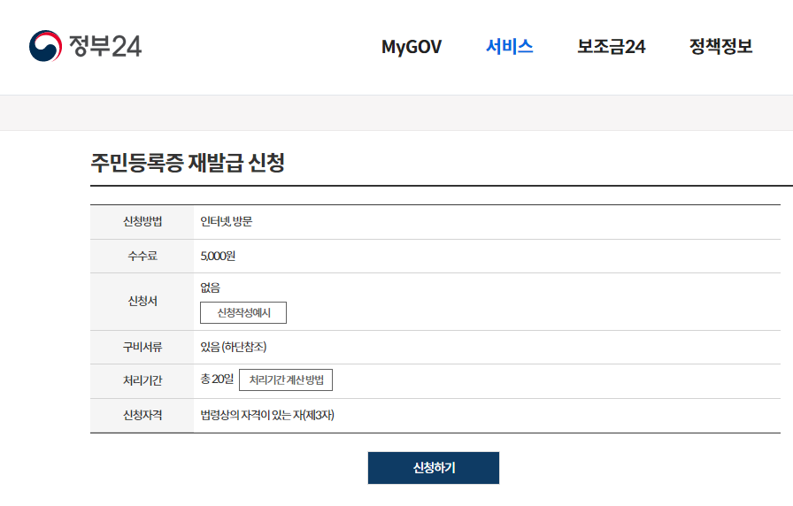 이제 모든 신청과정이 끝났고 하단 민원신청하기를 클릭 후 수수료를 결제해 주시면 됩니다. 신청이 완료되면 재발급 기간은 대략 보름에서 20일 정도 걸립니다. 간편해진 주민등록증 재발급 방법에 따라 이제 집에서 온라인으로 간편하게 신청해 보시기 바랍니다.