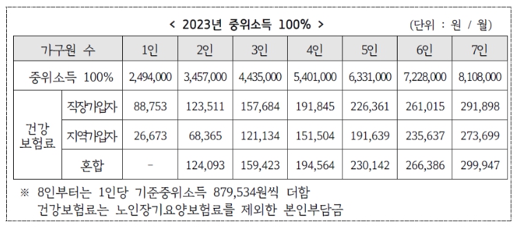 만 35세에서 59세 이하 미취업 여성으로 경기도에 1년 이상 거주 중이며 중위소득 100% 이하인 여성이 지원대상입니다. 기준 중위소득 100%는 아래와 같습니다.