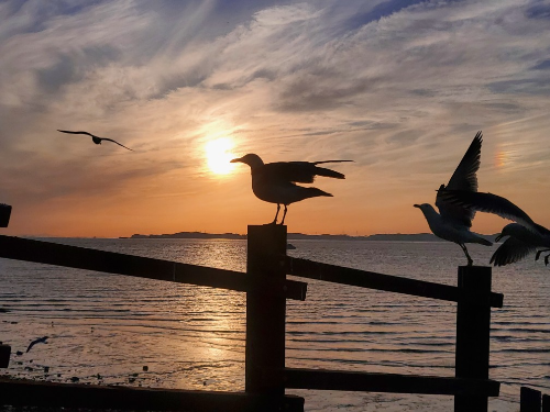 또 제부도 갈매는 다른 바닷가 갈매기보다 사람을 덜 무서워하는 것 같아요. 다른 곳에선 새우깡 들고 불러도 갈매기가 잘 안 모일 때가 많은데 제부도 갈매기는 새우깡맛을 알아서인지 정말 많이 모여듭니다. 어떨 땐 무섭다 싶을 정도로 수십 마리가 새우깡을 요구할 때도 있습니다. 아이들에겐 좋은 경험이니 새우깡 꼭 챙겨가시거나 구입해 바다산책로 가세요.