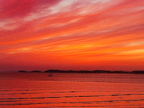 제부도 일몰은 아름답기로 유명한데 위 사진처럼 온 하늘과 바다가 가득 붉게 물든 사진을 보고 있노라면 정말 여기가 지구상에 존재하는 세상인가 싶게 황홀하단 생각만 들더라고요.